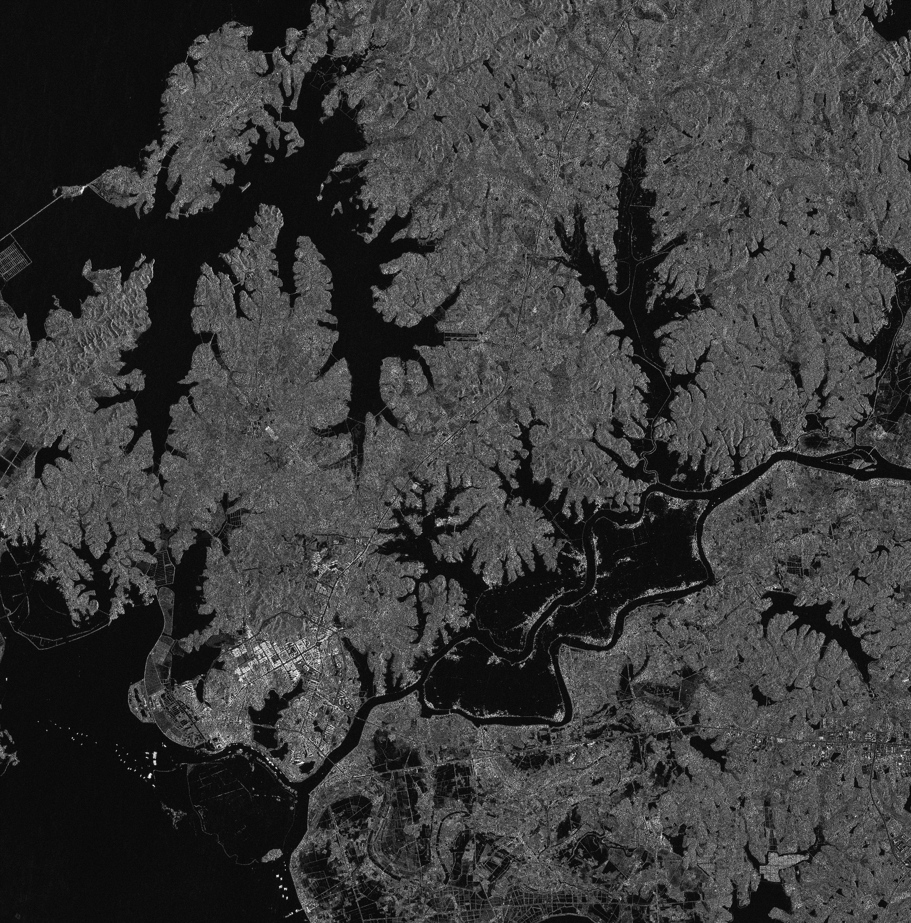 图2 江西省上饶市鄱阳县鄱阳镇及周边灾后高分三号卫星影像(2020年7月12日采集)