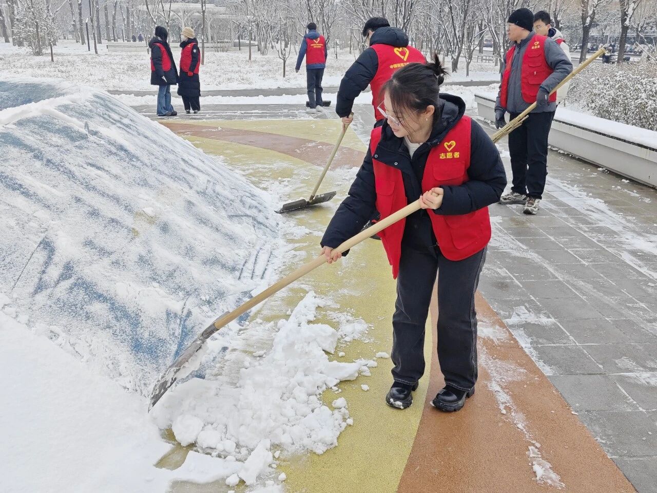 便民服务,传递指尖温暖。在社区广场,志愿者们设立了临时服务点,运用专业技能为居民提供电脑、手机等电子设备的清洁除尘、软件安装、系统优化及垃圾清理等服务。此外,针对近日降雪天气带来的不便,志愿者们还拿起铁锹,对社区公园的主要道路、活动区域的积雪和残冰进行了全面清扫,消除了出行安全隐患,为居民营造了整洁、安全的休闲环境。
